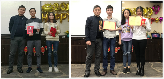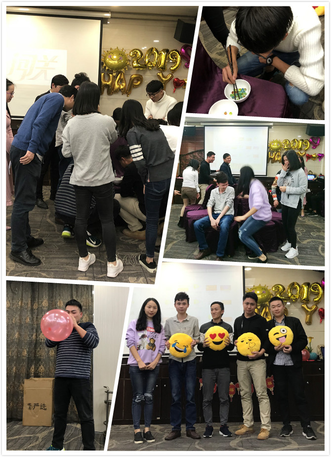 由游總迎新晚會前的致詞宣告開始,我們的團隊成員爭先展示自己,為大家獻上了精彩紛呈的節(jié)目。采購部的Liqi妹妹用德語朗誦了一首愛情詩歌,支持部和推廣部的小伙伴們則來了個舞蹈串燒,銷售部的大合唱激情澎湃。晚會上大家還一起玩游戲,搶椅子,吹氣球,玩的不亦樂乎。之后的抽獎環(huán)節(jié),大家更是興致高漲,到達晚會高潮。再看看頒獎環(huán)節(jié),這是對上一年表現(xiàn)優(yōu)秀的個人予以表彰,對他們的工作予以肯定,我們的每一個成員都是公司重要的一份子。最后則是團隊晚宴,酒足飯飽歡聲笑語中,2019迎新晚會圓滿結(jié)束。
