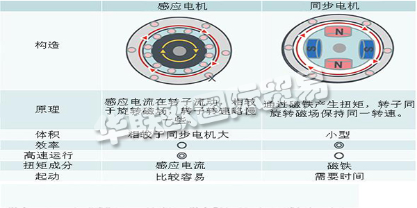 同步電機(jī)同感應(yīng)電機(jī)最大的區(qū)別就在于是否運(yùn)用磁鐵。感應(yīng)電機(jī)不運(yùn)用磁鐵經(jīng)過感應(yīng)電流發(fā)生扭矩。但是相較于同步電機(jī),功率大概低10%-30%。