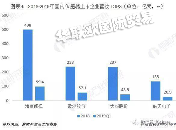 從主要的上市企業(yè)來(lái)看,年過(guò)百億營(yíng)收的傳感器企業(yè)僅有2家,這與國(guó)內(nèi)傳感器企業(yè)發(fā)力晚、競(jìng)爭(zhēng)大有關(guān)聯(lián),即便是作為國(guó)內(nèi)傳感器領(lǐng)頭羊歌爾股份,其營(yíng)收也僅過(guò)200億元(??低?002415)和大華股份(002236)因主營(yíng)業(yè)務(wù)并非傳感器,故而不做橫向?qū)Ρ?。
