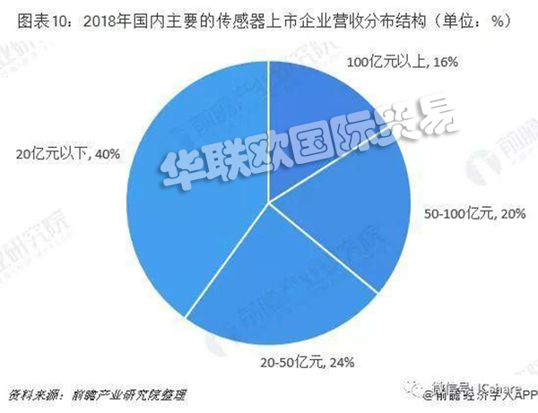 從營(yíng)收分布結(jié)構(gòu)來(lái)看,超過(guò)100億元的僅占16%,超過(guò)50億元以上為36%。此外,年?duì)I收20億以下的企業(yè)占比4成,這也反映了國(guó)內(nèi)傳感器行業(yè)激烈的競(jìng)爭(zhēng)形勢(shì)。