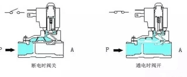 原理:常閉型通電時(shí),電磁線圈產(chǎn)生電磁力把敞開(kāi)件從閥座上提起,閥門(mén)打開(kāi);斷電時(shí),電磁力消失,彈簧把敞開(kāi)件壓在閥座上,閥門(mén)敞開(kāi)。(常開(kāi)型與此相反)