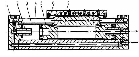 l-節(jié)流閥,2-緩沖柱塞,3-密封帶,4-防塵不銹鋼帶,5-活塞,6-滑塊,7-活塞架