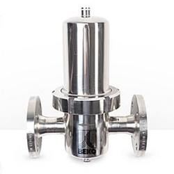 BEKO無菌過濾器是一種令人信服的解決方案:適用于間接食品接觸,可在高達180°C(356°F)的溫度下使用。優(yōu)質(zhì)的流量優(yōu)化型不銹鋼外殼,結合疏水性深度介質(zhì),可確保最大的工藝可靠性。為了確保無菌過濾器保持無菌狀態(tài),必須定期用飽和蒸汽對其進行滅菌。