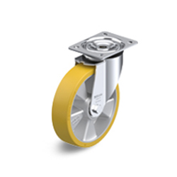 ALTH系列的車輪由壓鑄鋁輪心和優(yōu)質(zhì)聚氨酯彈性體Blickle Extrathane®胎面制成。胎面的硬度為92 Shore A,并結(jié)合了許多不同的特性,例如出色的抗切割和撕裂傳播能力、高承載能力和高水平的地板表面保護(hù)。除了許多其他應(yīng)用外,ALTH輪系列還用于物流、機(jī)器和系統(tǒng)工程領(lǐng)域的運(yùn)輸單元。ALTH系列的單輪也可作為帶頂板的腳輪與各種比克力支架系列組合使用。這些支架系列的范圍從中型壓制鋼旋轉(zhuǎn)支架到焊接鋼的重型支架。