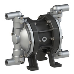 經(jīng)過數(shù)十年的驗(yàn)證,適用于大多數(shù)應(yīng)用。隔膜泵屬于正排量泵。它們由氣動(dòng)馬達(dá)提供動(dòng)力。通過馬達(dá),由泵軸互連的兩個(gè)膜通過壓縮空氣來回移動(dòng),并交替引入膜后面的氣室。切換過程由一個(gè)控制閥自動(dòng)進(jìn)行,如果膜到達(dá)終端位置,該控制閥就會(huì)切換。當(dāng)泵軸一側(cè)的隔膜通過引入的壓縮空氣置換介質(zhì)時(shí),隔膜同時(shí)在另一側(cè)產(chǎn)生負(fù)壓。結(jié)果,新的介質(zhì)流入泵腔并在下一個(gè)泵循環(huán)中被置換。介質(zhì)所在的泵腔由球閥(由不同材質(zhì)的球、球窩和O形圈組成)交替關(guān)閉和打開。