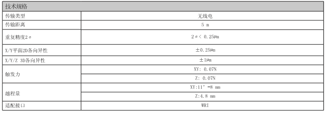 4)WRP60測(cè)頭是無(wú)線(xiàn)電傳輸觸發(fā)式測(cè)頭,適用于各種機(jī)床。兩個(gè)顯著特點(diǎn)一是電池壽命長(zhǎng),二是緊固的結(jié)構(gòu)使它能夠安裝長(zhǎng)度達(dá)1m的碳纖維加長(zhǎng)桿。