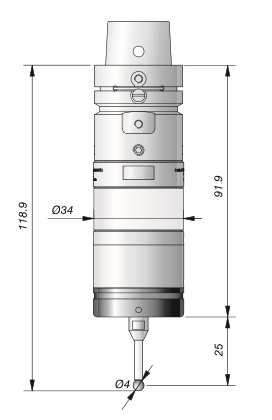 MARPOSS無線傳輸測頭WRP34P測頭帶有一個專用HSK32刀柄和4mm直徑紅寶石球陶瓷探針(25mm),并與WRI接收器兼容。新型WRP34P無線電傳輸觸發(fā)式測頭是用于小型3至5軸加工中心和銑削中心的高性能解決方案?;趧?chuàng)新的Marposs壓電晶體系統(tǒng),WRP34P測頭設(shè)計(jì)緊湊,能夠提供極好的多方位重復(fù)性。