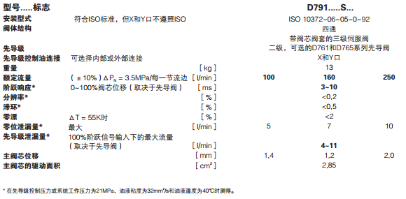 MOOG伺服閥D791系列是可用作三通、四通應用的流量控制伺服閥,適用于位置、速度、力或壓力伺服控制系統(tǒng),并具有很高的動態(tài)響應。專門為必須同時滿足大流量以及高動態(tài)特性要求的應用而開發(fā)設計的,集成式電路已采用SMD技術,可配備D761或D765系列先導閥。D791額定流量最大為250l/min。