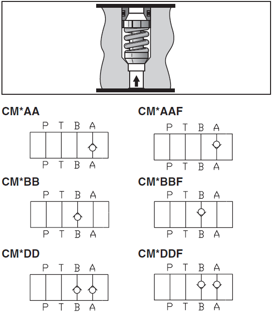 CM系列單向閥提供一個完整的,全面檢查壓力'P'端口,'A'口'B口的'三通閥,或油箱換向閥的'T'端口,閥體采用不銹鋼制造,內(nèi)部硬化鋼組件,提供額外的強(qiáng)度和耐久性,使用壽命更長,大型內(nèi)部流動路徑允許在低壓大流量下降。