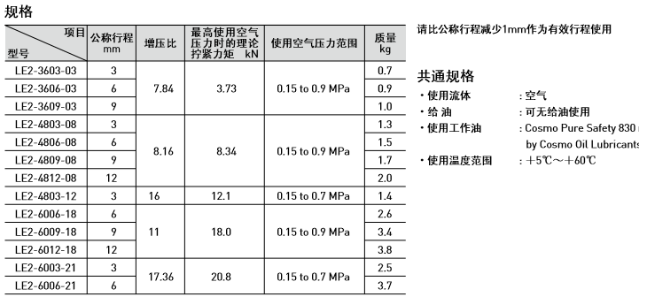 擰緊部件的工作速度隨使用增壓器而變化。超過(guò)左表速度使用會(huì)造成密封件早期磨損,脫落,由于混入空氣使輸出力降低,可能會(huì)造成空氣回路中混入油。尤其是如果增壓器的氣壓活塞返回時(shí)間比擰緊部件回復(fù)時(shí)間早,會(huì)是回路中油壓為負(fù)壓,造成混入空氣。