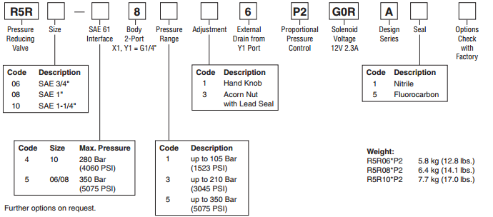 比例減壓閥R5R*P2都是基于機(jī)械調(diào)整序列R,機(jī)械先導(dǎo)閥和主級之間的附加比例單元允許連續(xù)壓力調(diào)節(jié)。最佳性能可與數(shù)字放大器模塊PCD00A-400來實(shí)現(xiàn)。該比例閥具有按比例電磁鐵連續(xù)調(diào)整的功能,可隨著機(jī)械的最大壓力調(diào)整,2端口體與SAE61凸緣,3種尺寸(SAE¾“,1”,11/4“),3級壓力。